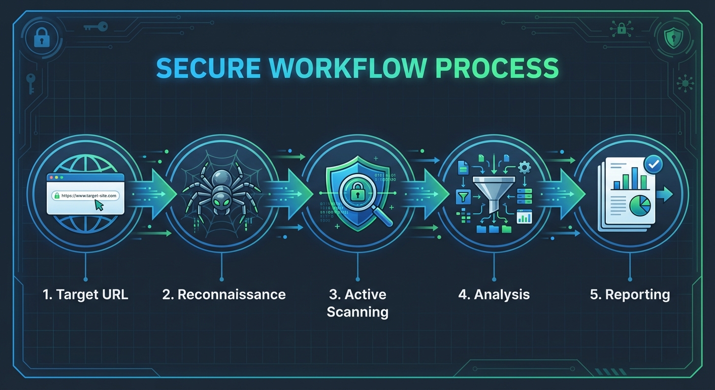 要理解 DAST 工具是如何工作的,我們首先需要了解它的掃描流程。這不僅僅是點擊一個「開始掃描」按鈕那麼簡單,背後涉及了一系列複雜的步驟。